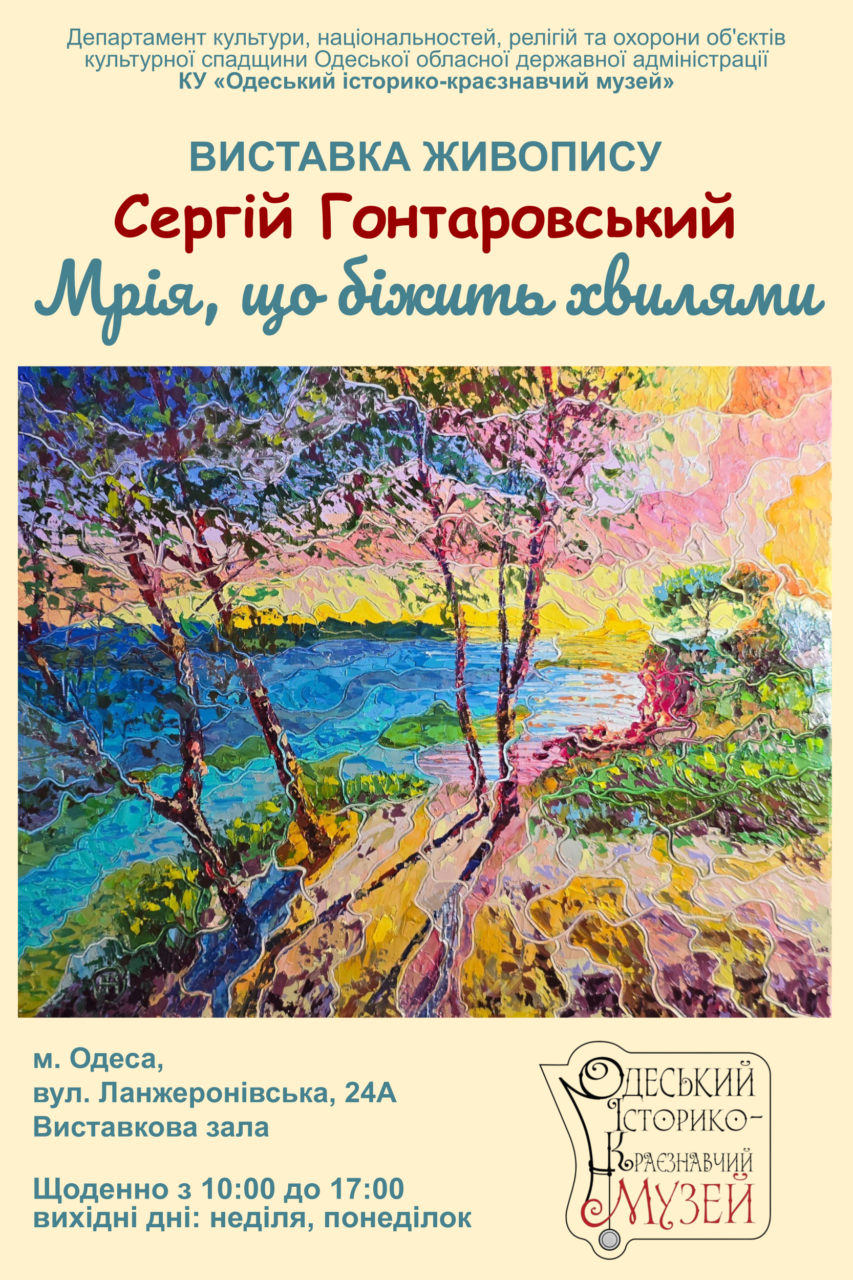 Назва виставки глибоко розкриває її ідею: через рельєфні полотна художник транслює не просто красу природи, а й віддзеркалення внутрішнього стану українців. Для автора, одесита, море — це «генетичний код» міста та джерело енергії, що допомагає не зламатися, а віднайти себе навіть у часи найтяжчих випробувань. Мистецтво стає тією силою, що об’єднує українців у цей складний час довкола традиційних цінностей нації. Радимо обов’язково відвідати цю непересічну подію.